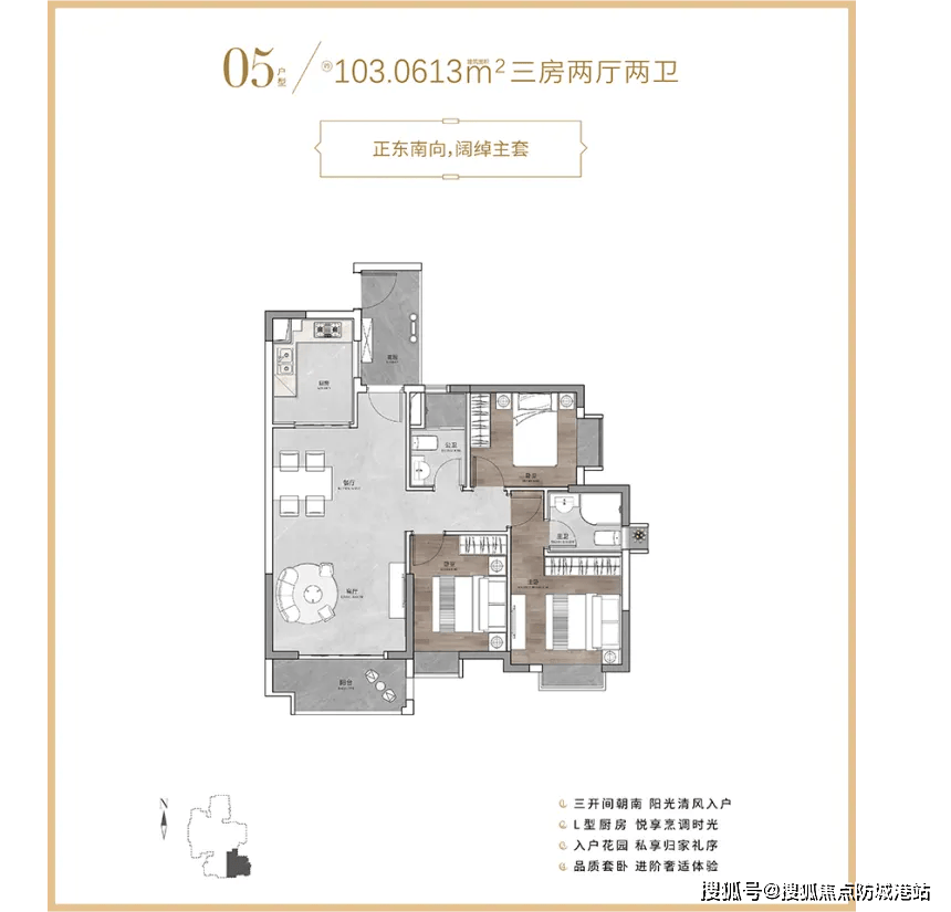 最大的在售户型是103㎡的3室2厅,总价在336万到450万元之间,不同楼层和朝向价格略有差异,适合有老人同住的三代同堂家庭。该户型客厅面宽更宽,搭配更大的阳台,不仅提升了空间的通透感和采光效果,部分高楼层房源还能看到远处的街景,观景视野极佳。三个卧室空间充足,能为老人和孩子提供舒适的居住环境,卫生间功能分区合理,满足多人口家庭的日常使用需求,让三代同堂的生活温馨而不拥挤。