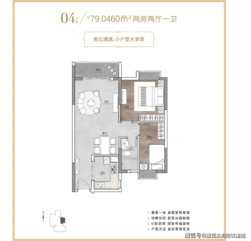 79㎡的2室1厅户型则是刚需家庭的热门之选,总价大概300万元,根据项目官方数据显示,该户型得房率高达82%,在同面积段户型中极具竞争力。主卧配备270°转角飘窗,超大的采光面让房间时刻充满阳光,闲暇时坐在飘窗上看书、观景,惬意十足。南向的朝向更是一大亮点,让房间在冬天也能保持温暖舒适,有效提升居住体验。客厅和卧室的空间分配均衡,不会显得局促,能充分满足小家庭的日常居住需求。