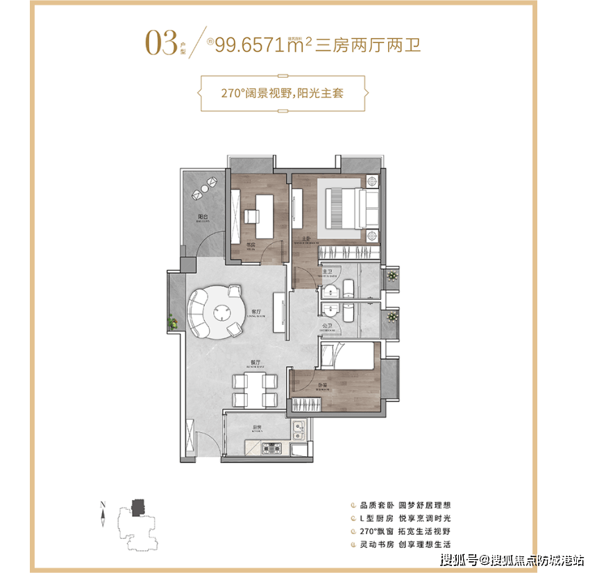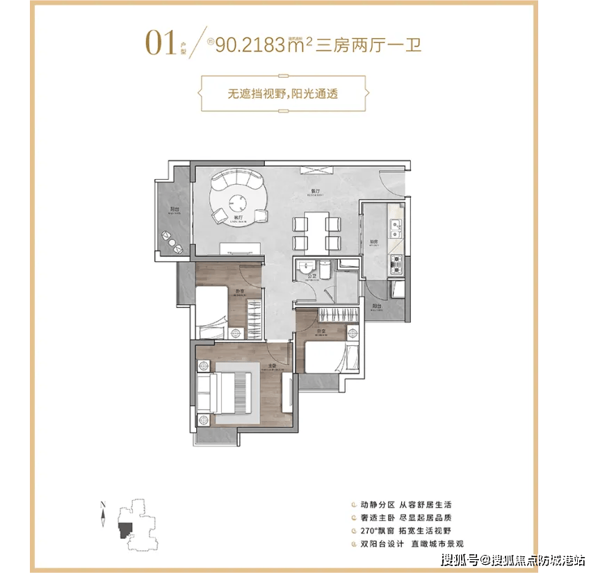 三口之家可以重点关注90㎡的3室2厅户型,总价约328万元。该户型布局规整,功能分区明确,厨房采用U型设计,操作空间充足,还预留了冰箱位置,让业主的烹饪生活更便捷。次卧面积适中,刚好能放下儿童床,为孩子打造专属的成长空间。公卫做了干湿分离设计,有效避免了日常使用时的水渍困扰,让家人的使用互不干扰,大大提升了生活效率。