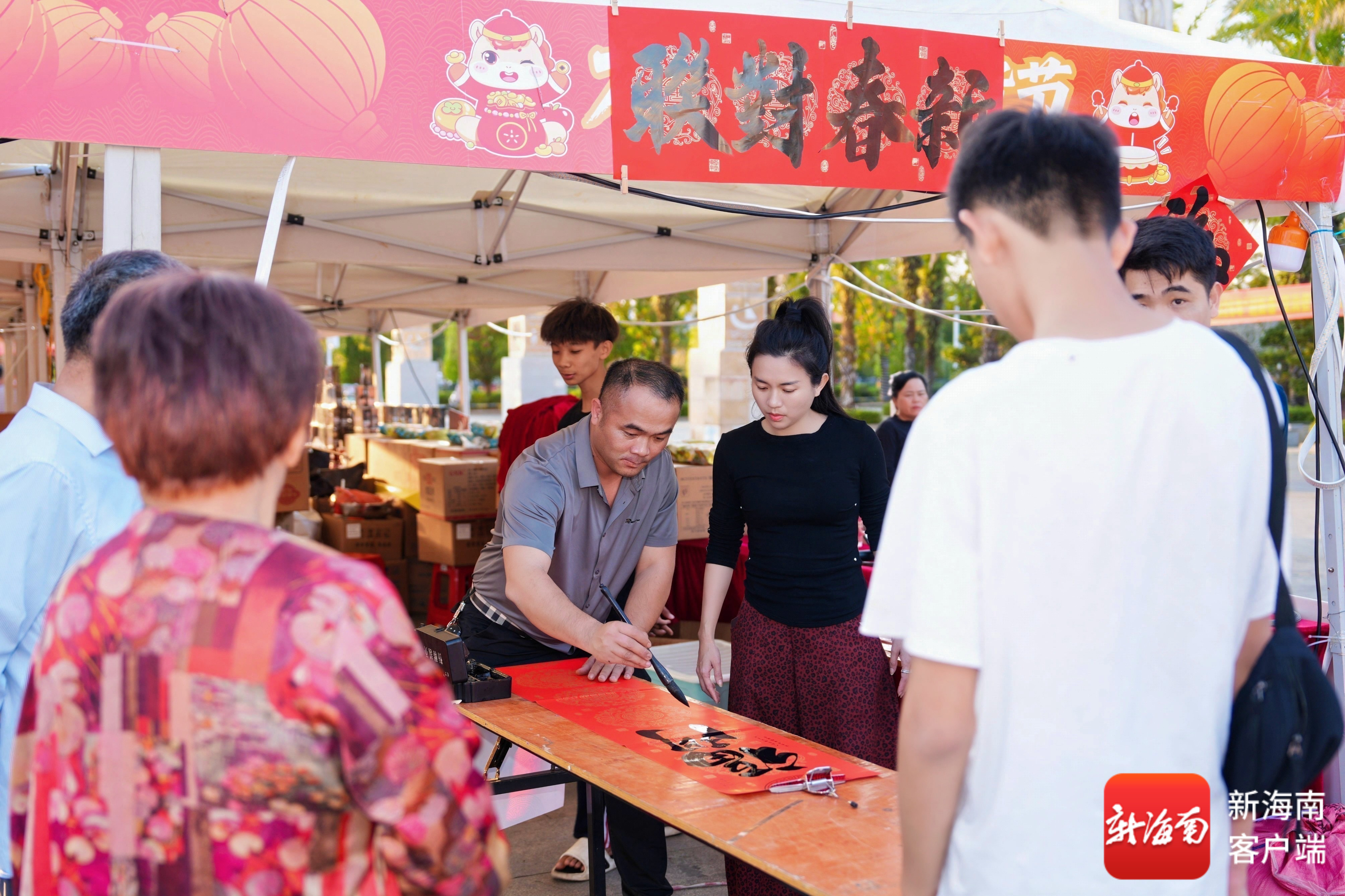 活动精心设置了特色摊位,汇聚各类新春好物,既有兴隆咖啡、斑斓甜品、热带水果、芝麻糖等万宁特色产品,也有菌汤包、莲籽藕粉等外地优质土特产,还有春联、福字、马年灯笼等传统年俗商品及文创非遗等特色好物,全方位满足不同群体的采购需求与年味体验需求。5天期间累计接待市民游客数千人次,现场人气持续攀升,询价声、欢笑声不绝于耳,成为万宁马年新春最具烟火气的特色活动之一。