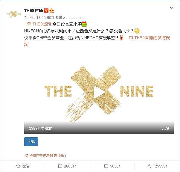 在长达七分钟的明星VLOG中,THE9的九位小姐姐分享了她们端午节加班时所发生的一系列事情,例如:手势、应援色、粉丝名称以及THE9队长人选等等。在这些内容中,最让粉丝们期待的莫过于粉丝名称了。毕竟一个好的粉丝名称不仅能让粉丝们倍有面子,也能让粉丝们方便向其他明星的粉丝群体宣传自己的偶像。因此,THE9在决定粉丝名称的时候各抒己见,提出了许多意见,最终敲定NINECHO作为粉丝名称。一方面是因为这个昵称寓意深刻,另一方面则是因为读起来朗朗上口。