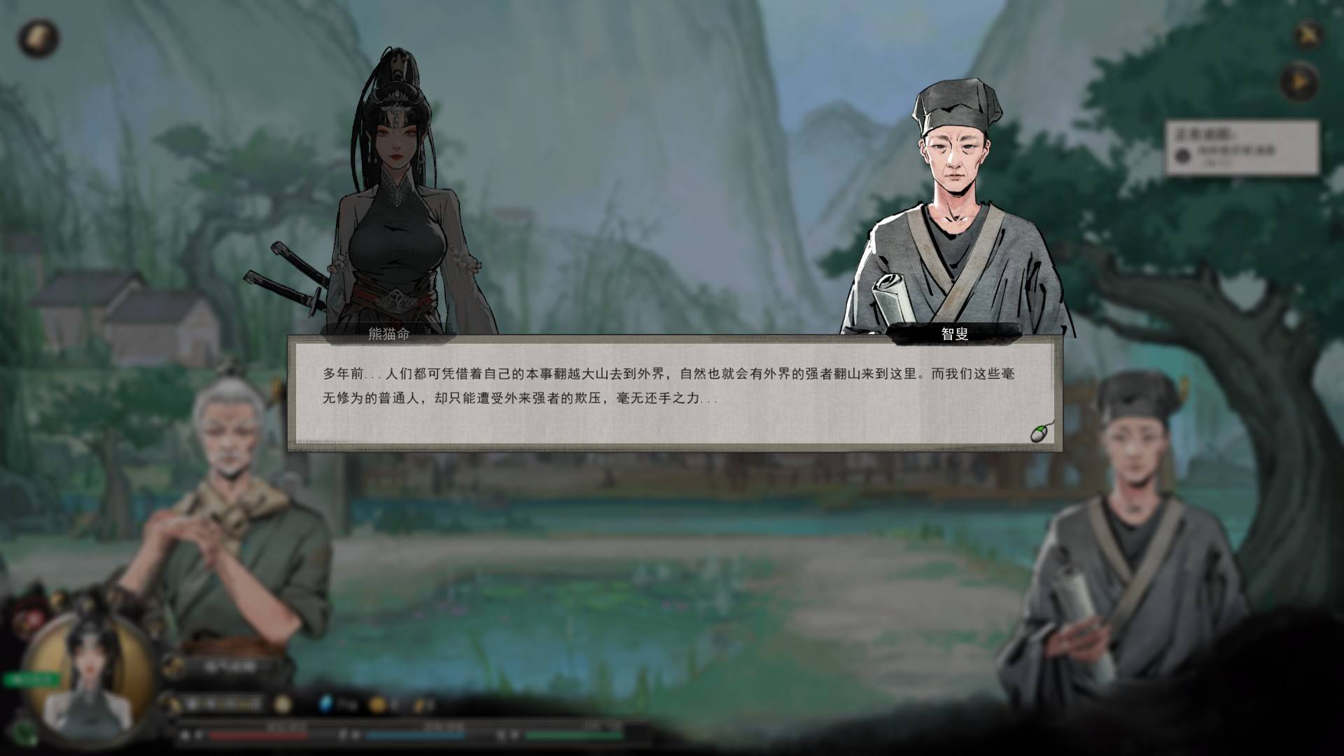 而相对而言《鬼谷八荒》在文字量与文学水准上就有明显的短板,这导致了 NPC 的高度脸谱化,任务描述过于省事,世界观交代不清,难以让玩家融入游戏气氛等问题,特别是在熟悉了战斗和探索系统,准备进入跟各种 NPC 互动以解锁更多内容的阶段时,在对话时经常会产生类似「这就完了!?」的诧异,另外控制 NPC 个人行为的 AI 也略显粗糙和原始,要么找不到行动规律,要么认死理一旦结仇就追杀到天涯海角,这些显然都是游戏做得还不够的地方。