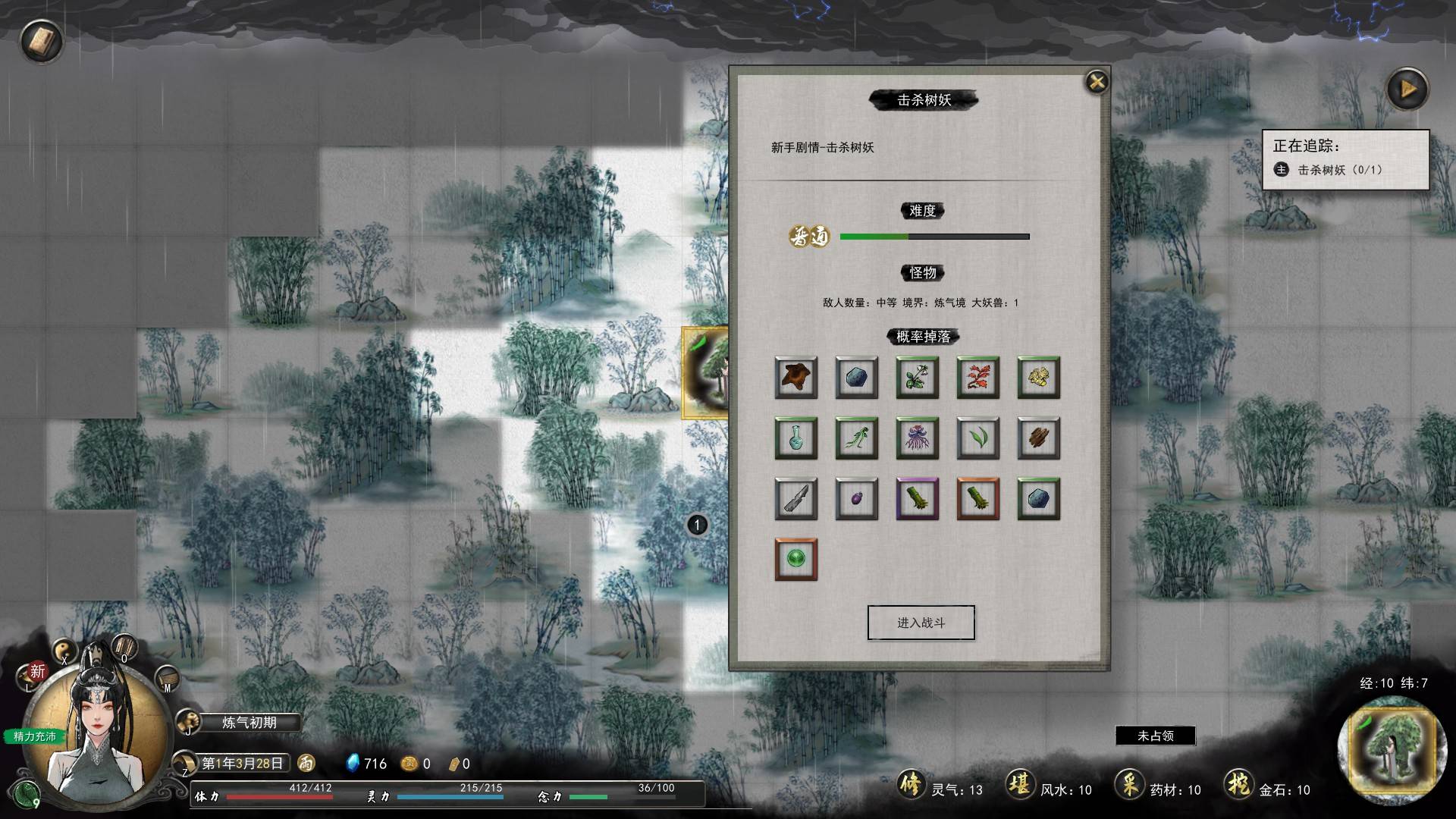 再加上游戏时间每过一个月地图上的元素就会部分刷新的特点,让人在探索过程中丝毫感觉不到枯燥,任何时候都能保持新鲜感。配合城镇里的支线悬赏任务去刷小怪,是在初期提升声望、赚取报酬以及获得「城主令」换取高级招式的有效途径,如果有新的技能又不舍得用魂石和消耗太多时间来提升招式等级,那么完全可以通过不断打怪提升技能的熟练度,剩下就是按部就班地积累实力提升修仙等级了,当然还有一些很有意思的分支系统与细节玩法会在后面提到。