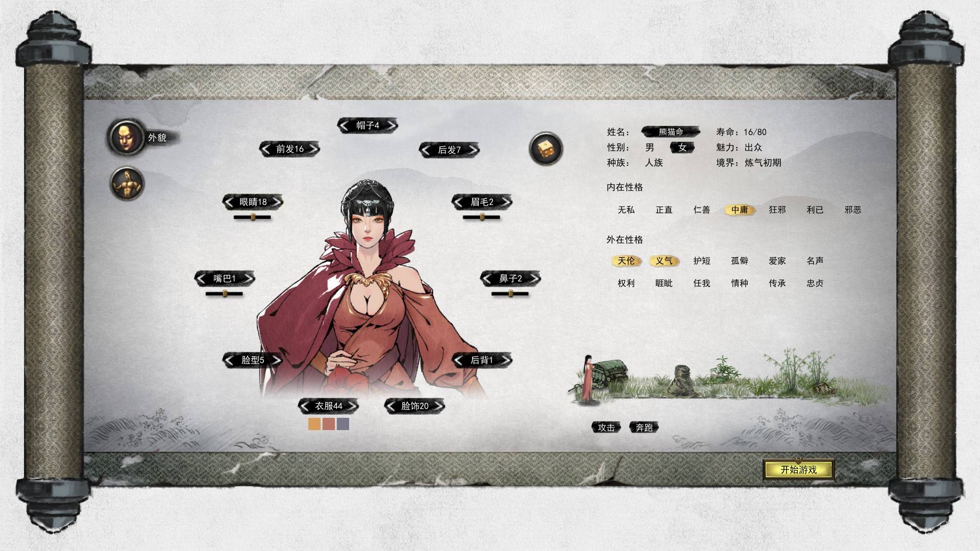 可能不少玩家从主人公捏脸环节就发现了这两款游戏的相似之处,同样是上百个「零件」随机拼凑的角色形象,人物属性、战斗属性、功法资质、灵根资质、技艺资质的内容之多、具体描述之详细,让人眼花缭乱。配合那种质朴的美术风格,很难让人不把二者联系到一起。